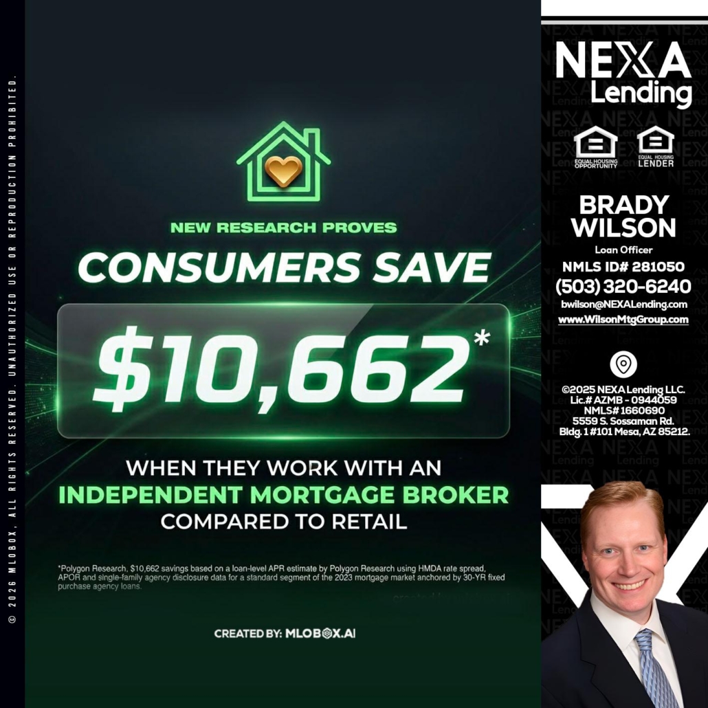 10,662 - Brady Wilson -Branch ManagerHi, my name is Brady Wilson. I’m a Loan Officer with NEXA Lending LLC., offering personalized mortgage solutions, fast customized quotes, great rates and service with integrity.