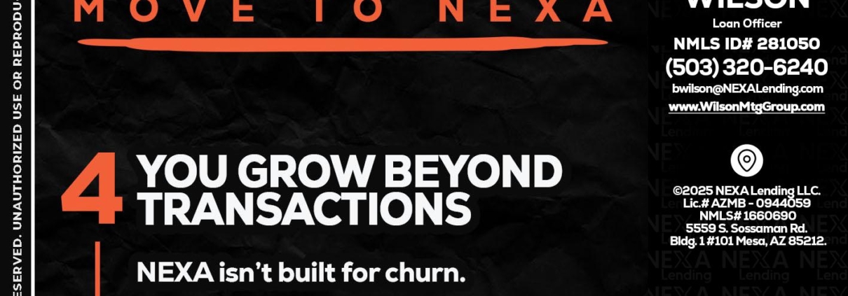 Hi, my name is Brady Wilson. I’m a Loan Officer with NEXA Lending LLC., offering personalized mortgage solutions, fast customized quotes, great rates and service with integrity.