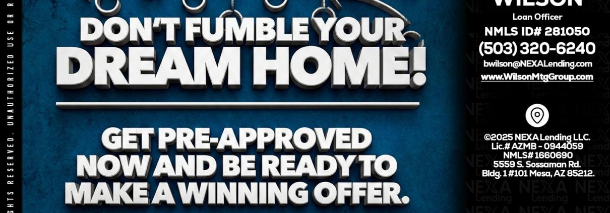 dont fumble - Brady Wilson -Branch ManagerHi, my name is Brady Wilson. I’m a Loan Officer with NEXA Lending LLC., offering personalized mortgage solutions, fast customized quotes, great rates and service with integrity.