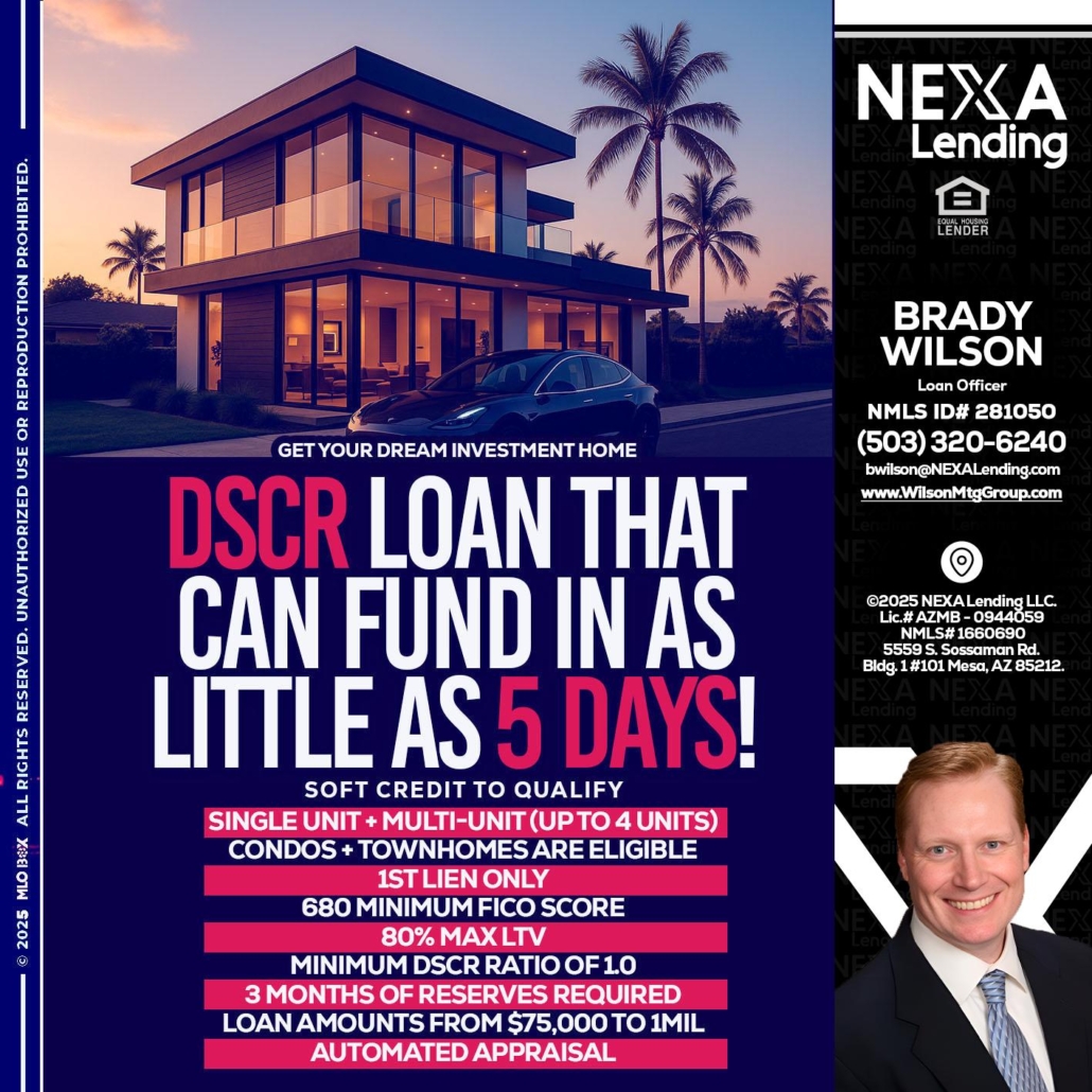 Hi, my name is Brady Wilson. I’m a Loan Officer with NEXA Mortgage LLC., offering personalized mortgage solutions, fast customized quotes, great rates and service with integrity.