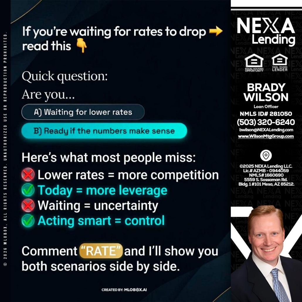 IF YOU ARE - Brady Wilson -Branch ManagerHi, my name is Brady Wilson. I’m a Loan Officer with NEXA Lending LLC., offering personalized mortgage solutions, fast customized quotes, great rates and service with integrity.