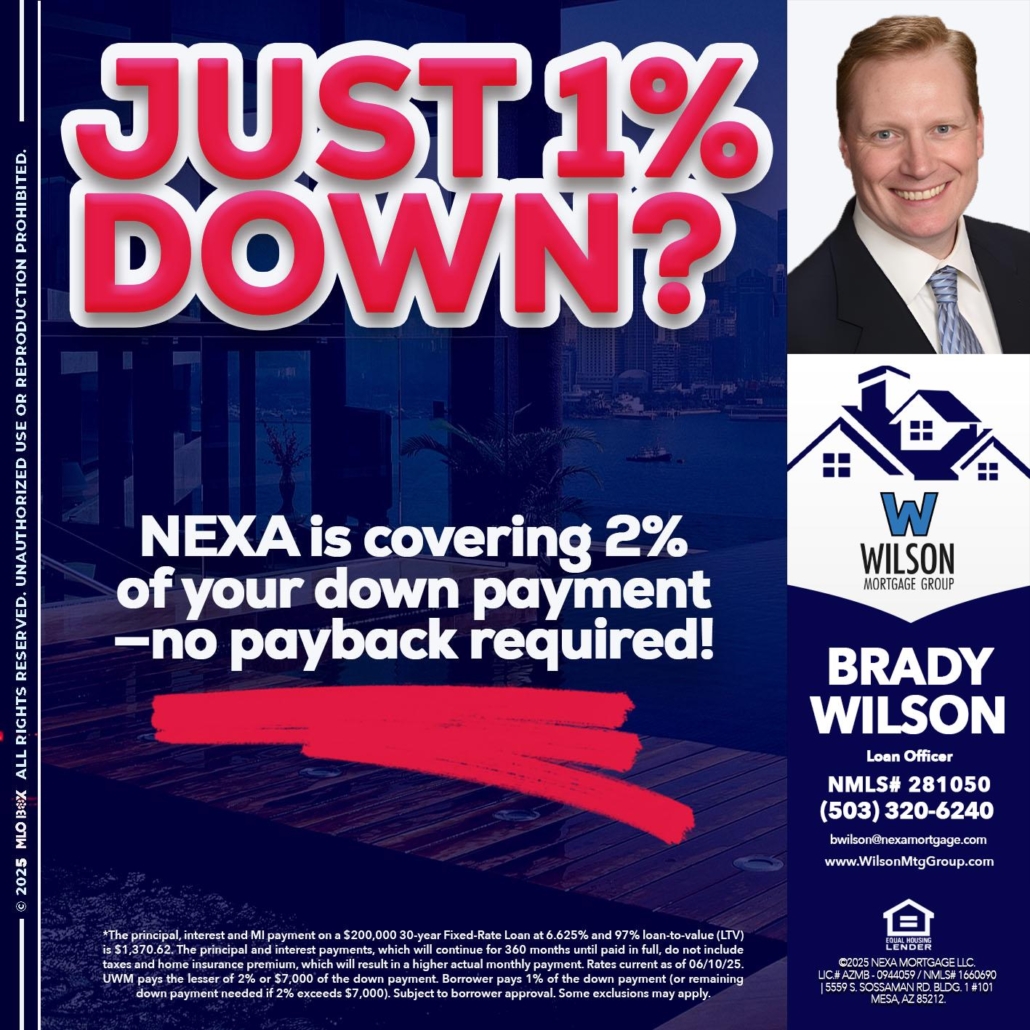 Hi, my name is Brady Wilson. I’m a Loan Officer with NEXA Mortgage LLC., offering personalized mortgage solutions, fast customized quotes, great rates and service with integrity.