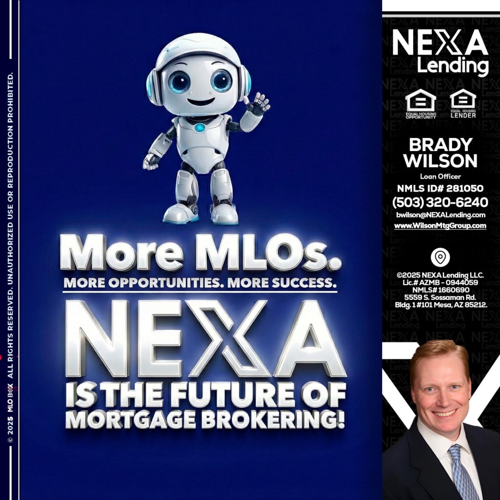Hi, my name is Brady Wilson. I’m a Loan Officer with NEXA Lending LLC., offering personalized mortgage solutions, fast customized quotes, great rates and service with integrity.