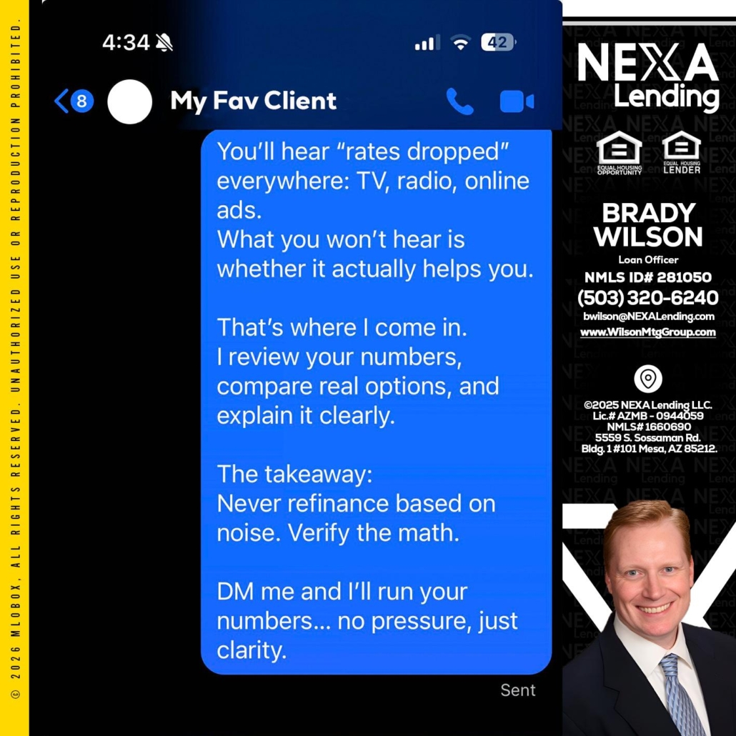 MY FAV CLIENT - Brady Wilson -Branch ManagerHi, my name is Brady Wilson. I’m a Loan Officer with NEXA Lending LLC., offering personalized mortgage solutions, fast customized quotes, great rates and service with integrity.