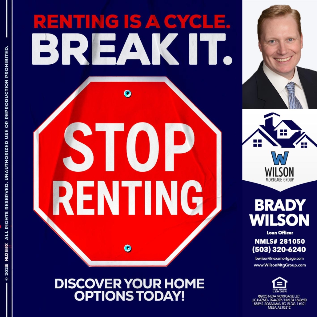 STOP RENTING - Brady Wilson -Branch ManagerHi, my name is Brady Wilson. I’m a Loan Officer with NEXA Mortgage LLC., offering personalized mortgage solutions, fast customized quotes, great rates and service with integrity.