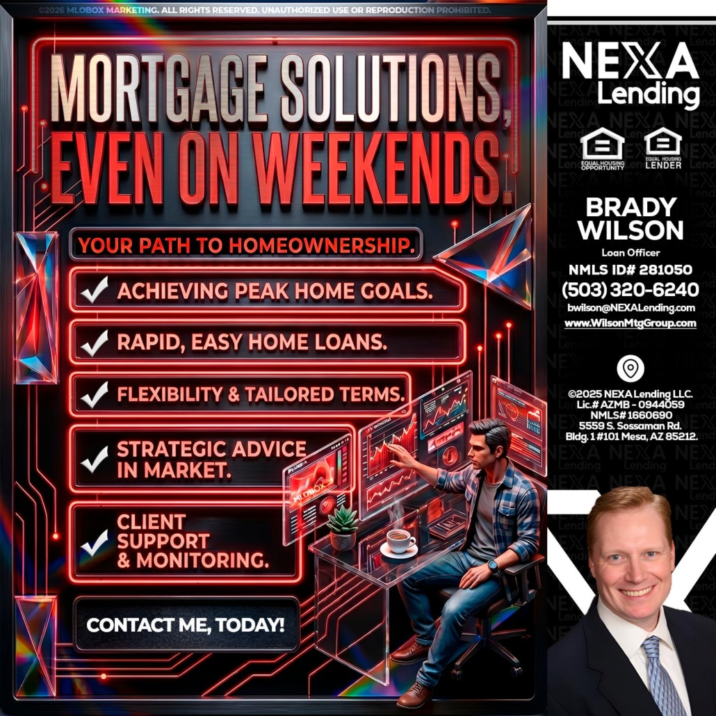 Hi, my name is Brady Wilson. I’m a Loan Officer with NEXA Lending LLC., offering personalized mortgage solutions, fast customized quotes, great rates and service with integrity.