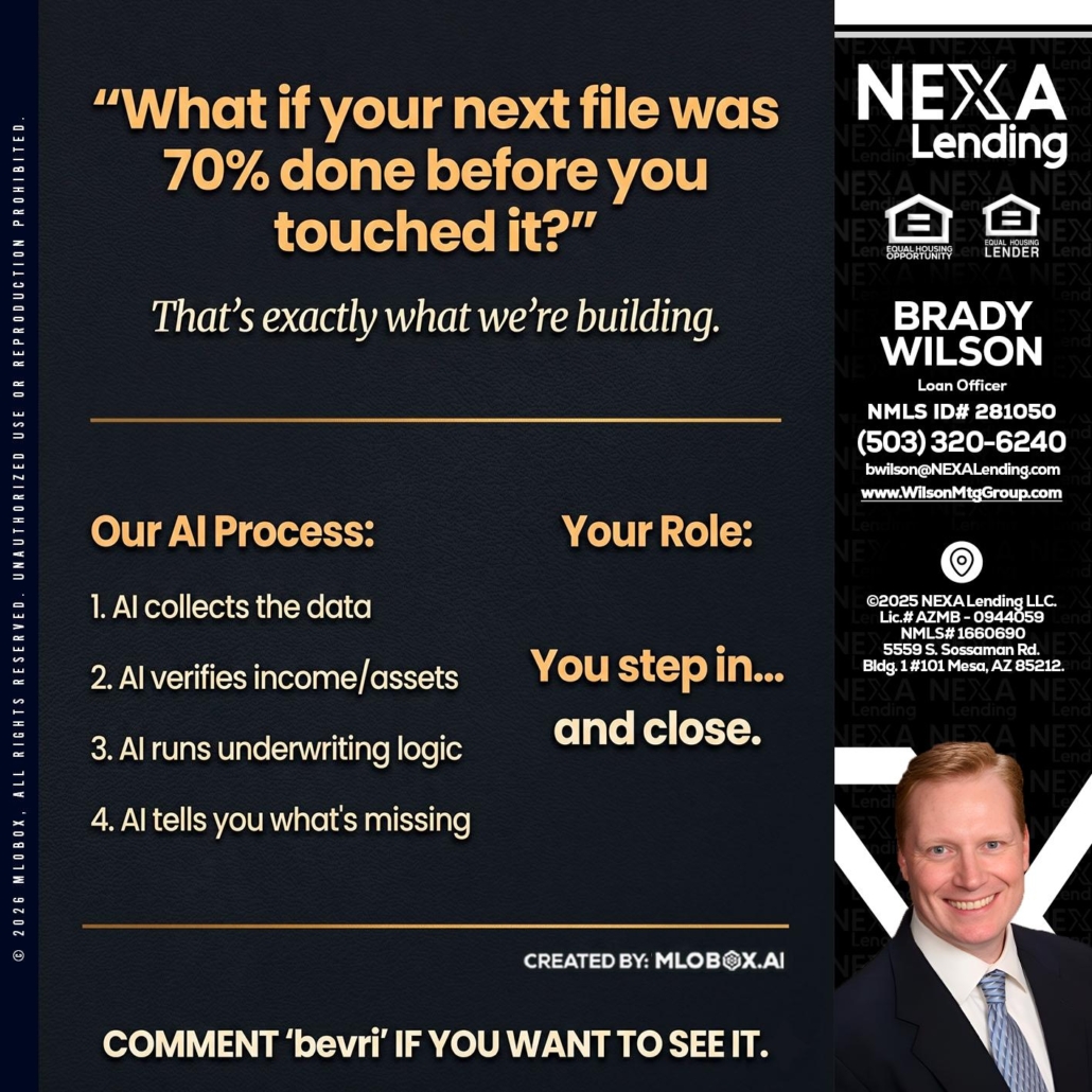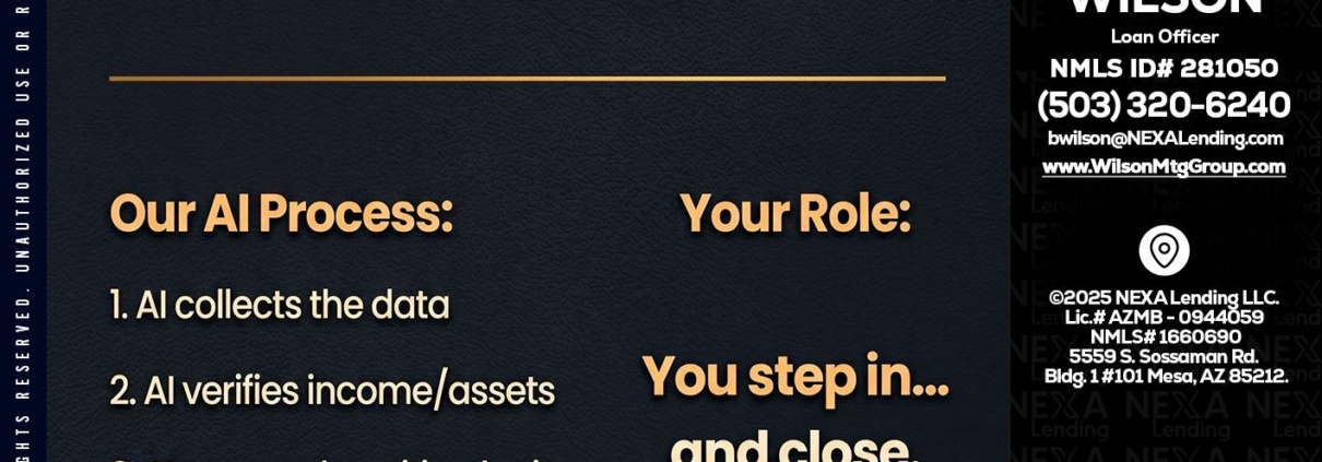 Hi, my name is Brady Wilson. I’m a Loan Officer with NEXA Lending LLC., offering personalized mortgage solutions, fast customized quotes, great rates and service with integrity.