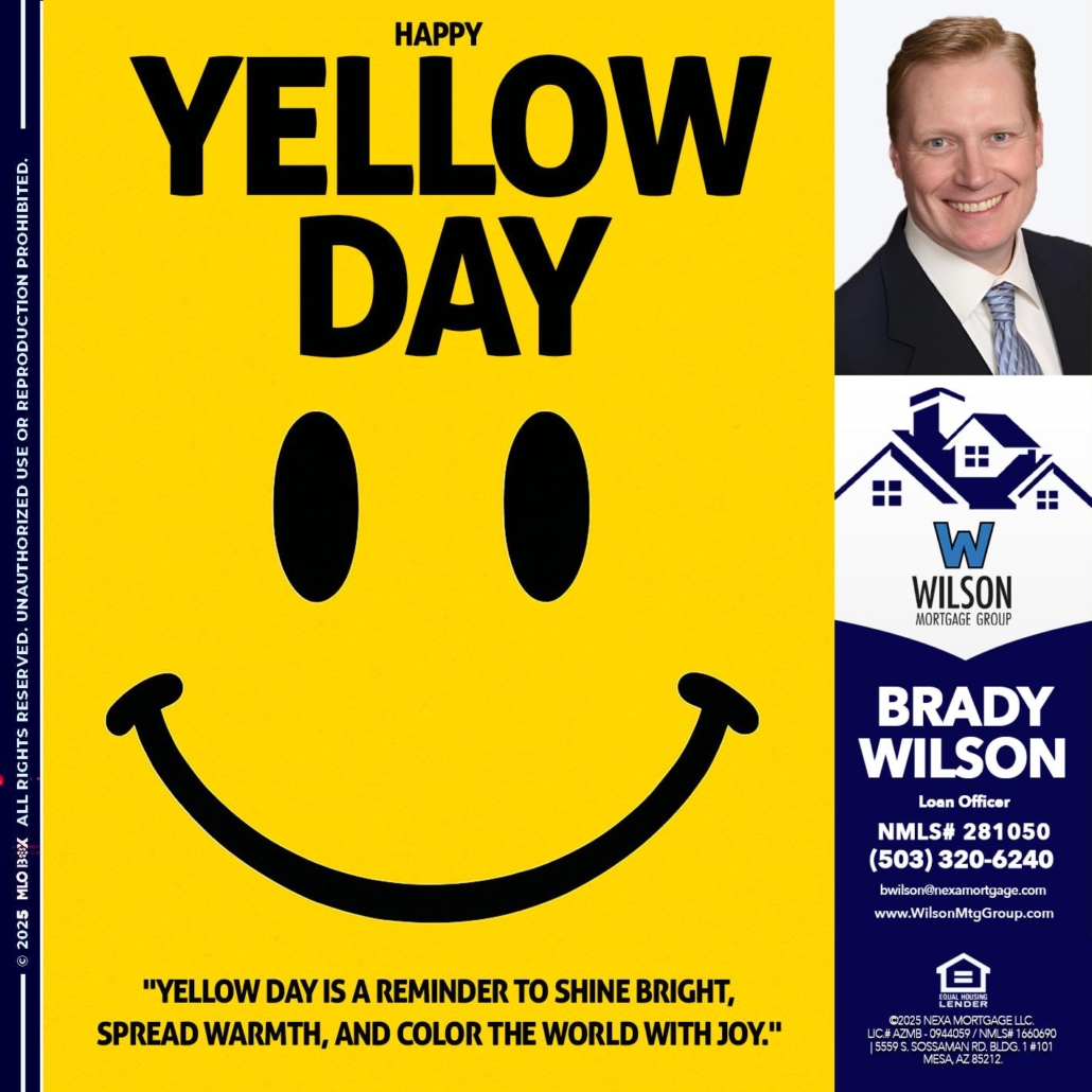 YELLOW DAY - Brady Wilson -Branch ManagerHi, my name is Brady Wilson. I’m a Loan Officer with NEXA Mortgage LLC., offering personalized mortgage solutions, fast customized quotes, great rates and service with integrity.