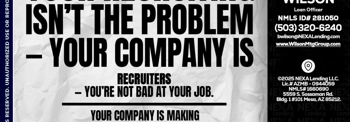 YOUR RECRUITING - Brady Wilson -Branch ManagerHi, my name is Brady Wilson. I’m a Loan Officer with NEXA Mortgage LLC., offering personalized mortgage solutions, fast customized quotes, great rates and service with integrity.